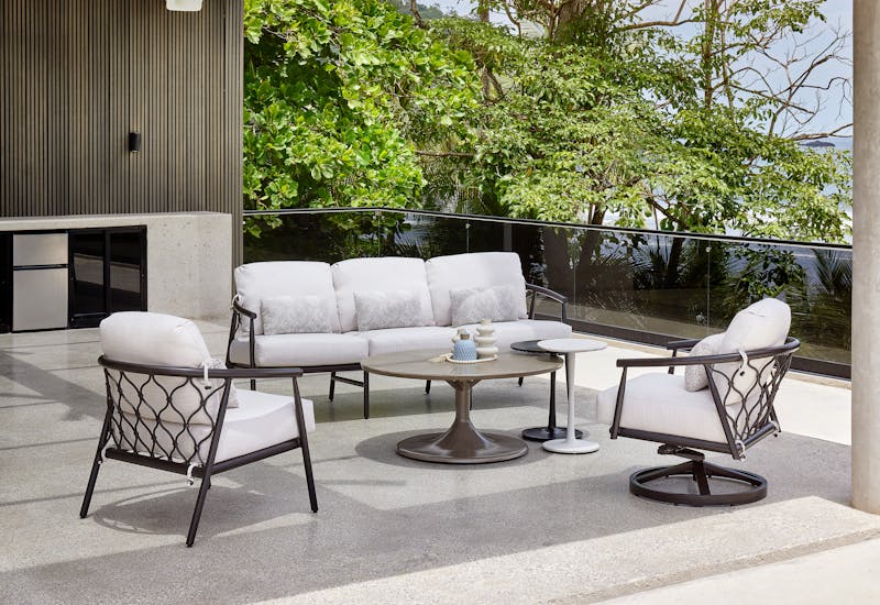 If you have a small outdoor area, nesting tables and occasional tables provide extra surface space without clutter. These smaller patio furniture pieces can be moved around easily and stored compactly. A small round or square table is a great addition to a side seating nook.