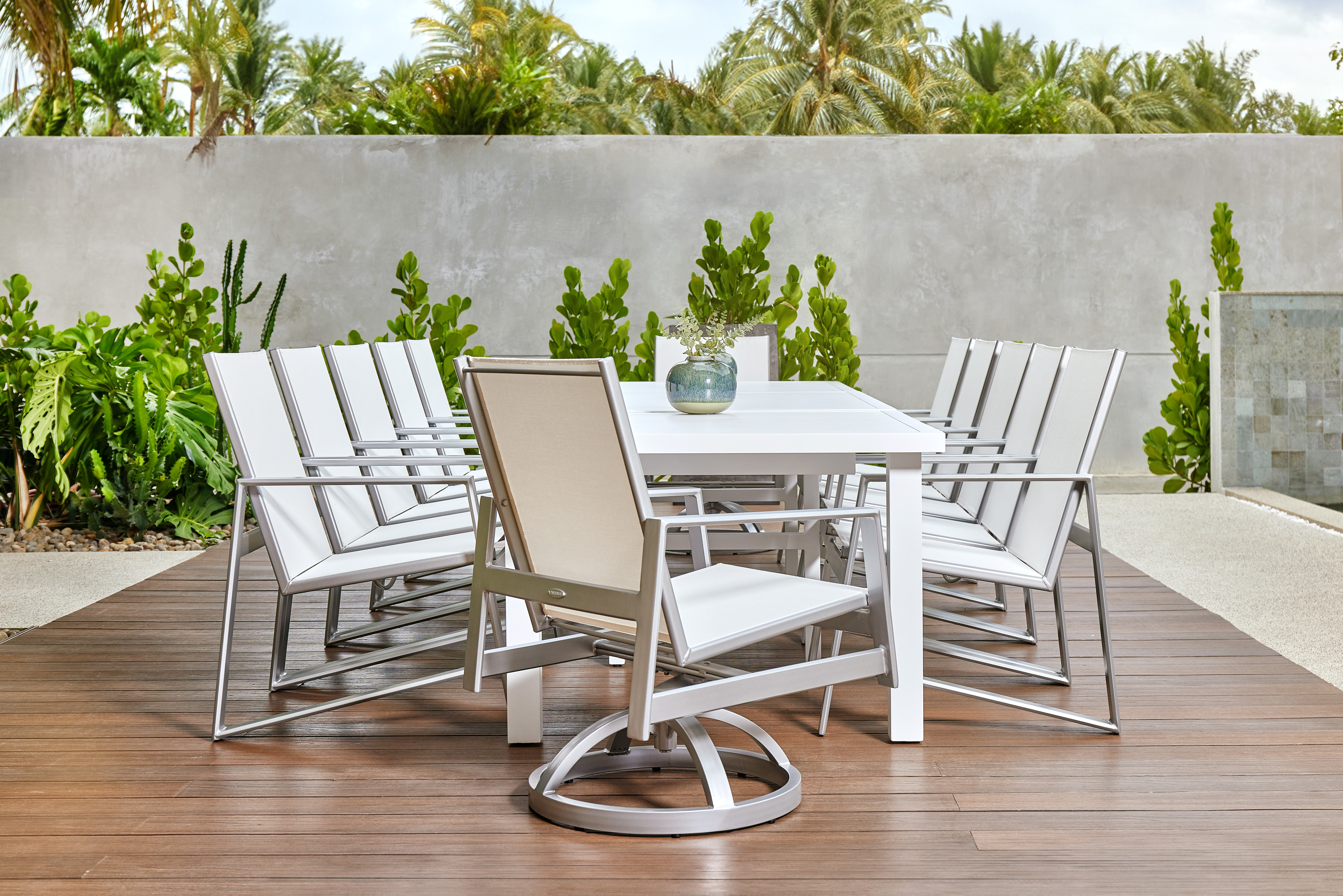 A dining table is the heart of any outdoor dining setup. The size you need depends on your outdoor area and how many guests you typically entertain. Standard outdoor dining tables range in height from 28 to 30 inches, which pairs well with dining chairs at around 18 inches in seat height.