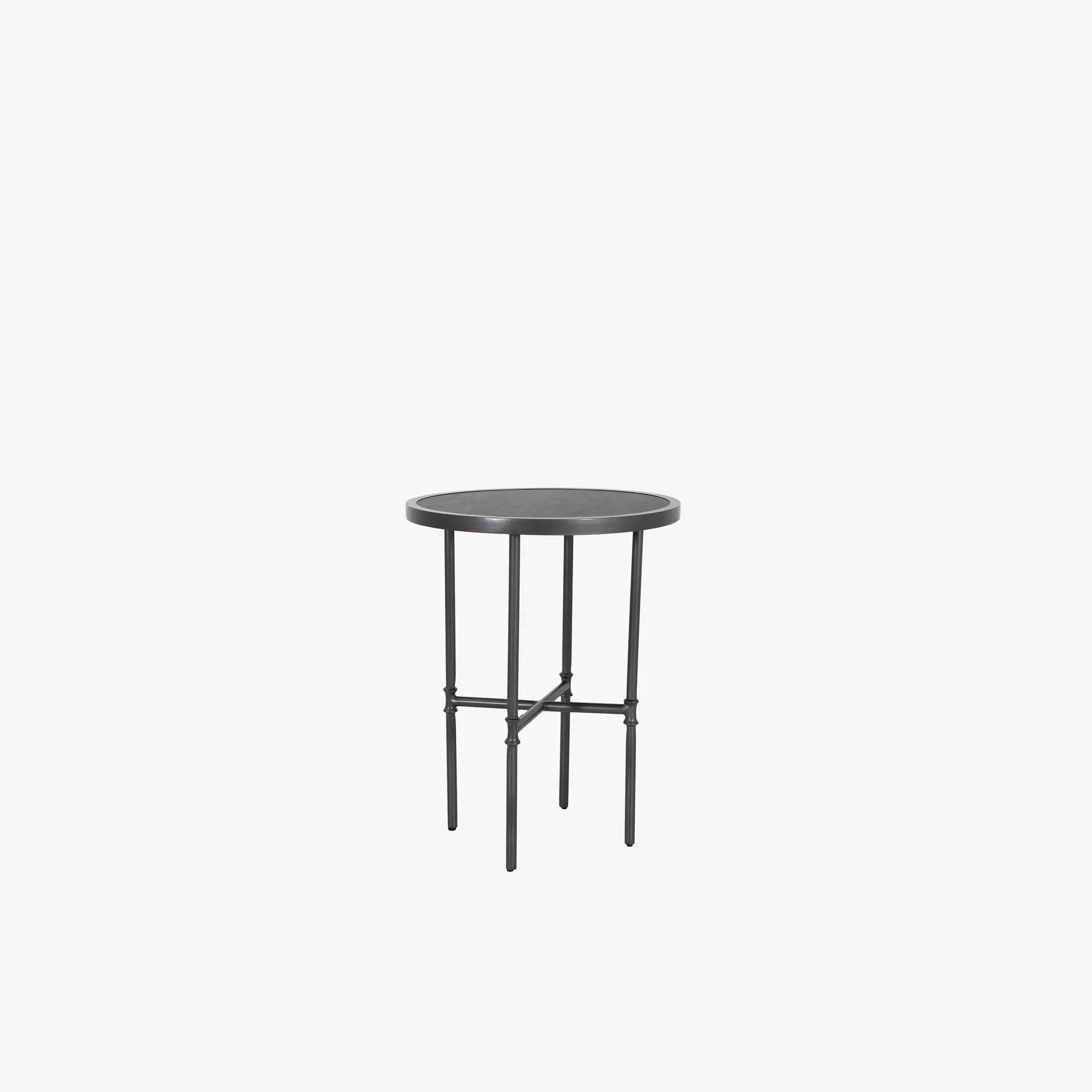 The Marquis 32" Round Bar Table has a rustic, forged look that adds depth and texture to your showroom. It works best in cozy, relaxed setups, especially during fall or cooler months.